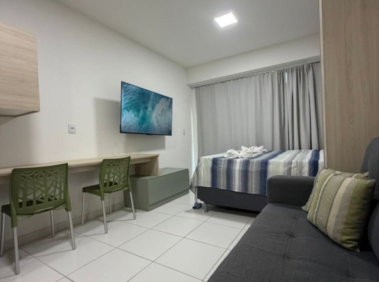 Com 33m², a unidade está localizada no térreo, totalmente mobiliada e será vendida em regime porteira fechada, ou seja, pronta para uso imediato ou para gerar renda com locação por temporada.