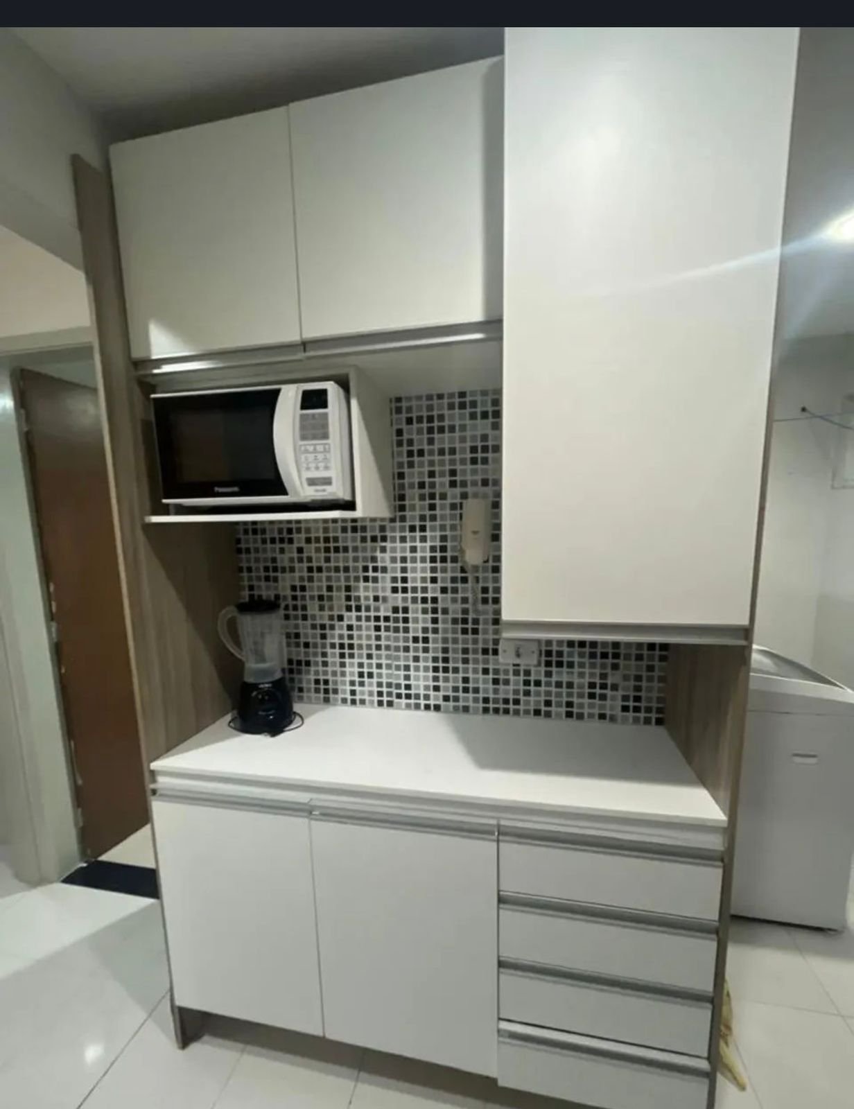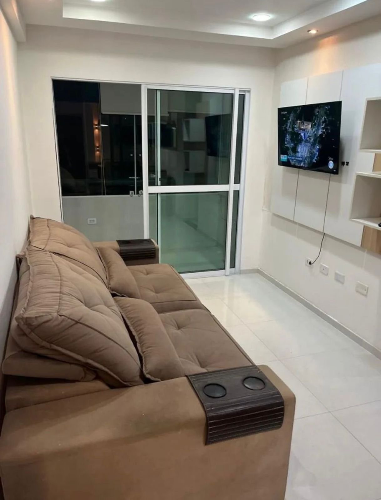 Apartamento completamente mobiliado, com acabamento diferenciado, decorado com gesso, luminárias e cortinas.